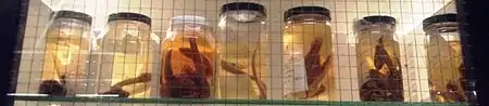The Fish Collection holds over 850,000 specimens, including whole fish stored in alcohol, skeletons, cleared and stained fish, and fish X-rays. It also has over 50,000 DNA and tissue samples. It is the third largest fish collection in Canada, with particular strengths in freshwater and nearshore marine species. Locations covered include Canada, the Aleutians, the Malay Archipelago, Mexico, the Galapagos Islands, Panama, and the Amazon River Basin.[22]