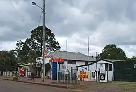 The locality name Benarkin takes its name from ''Benarqui'' from the, Dungibara language which refers to the blackbutt tree (Eucalyptus pilularis) which are common in the district.[5] When the Blackbutt railway station was built to serve the town of Blackbutt, it was some distance from the town, so it was decided to name the railway station Bernakin in 1910[6] and this name was then used for the settlement that grew up around the railway station. Because of the close proximity (3.5 kilometres (2.2 mi) apart) and intertwined history of the two towns, they are often referred to as the twin towns of Blackbutt-Benarkin.[7]