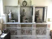 A monument was erected by his son, John, in St. Michael's Church, Musbury, which shows three generations of family patriarchs at prayer, each kneeling with his wife. The inscription under the middle couple, being Sir Bernard and his wife, is as follows:[8]