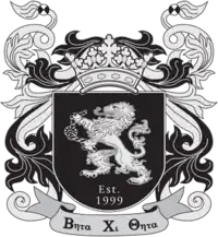 The fraternity's colors are black, silver, and white.[3] Its symbol is the rampant lion.[3] Its motto is "Above all else, Brotherhood".[3]