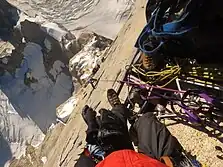 • Aid climbing techniques. Even in the era of free climbing, the use of some aid is common in big wall climbing; the scale of the routes means that sections may have difficulties that are way beyond the general route;[3] in addition, abseil retreat from big wall routes is serious and complex (particularly with pendulums and traverses), and climbers will therefore use aid to maintain upward momentum (also called French free climbing).[3][20]