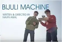 Bijuli Machine is a 2016 Nepali film directed by Navin Awal and produced by Rishav Acharya, Santosh Lamichhane, Bindu Timilsina, Sanjeev Neupane, and Navin Awal.[1][2] The film revolves around two teenage friends who set out to solve Nepal's chronic “load-shedding” problem with the innovation of a unique ‘Bijuli Machine’.[3] Santosh Lamichhane is also the Science Advisor for the film.[4] The film released on Mangsir 17, 2073 B.S. i..e December 2, 2016.[5][6]