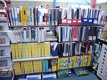 The collection size in 1968 was 19,000 items, mostly books and magazine.[10] This increased to over 63,000 items in 1992, and included a much more diverse range of media, from children's puzzles to archives, as well as the provision of stock from other branches, and access to system-wide databases.[163] By 2003 Birkenhead's stock had risen to 67,500.[35] Shortly afterwards, the library was temporarily relocated to the Leisure Centre where there was only room to house 40–50% of the collection.[38]
