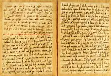 The Sana'a manuscript, is one of the oldest Quranic manuscripts in existence. It contains only three chapters. It was found, along with many other Quranic and non-Quranic fragments, in Yemen in 1972 during restoration of the Great Mosque of Sana'a. The manuscript is written on parchment, and comprises two layers of text (see palimpsest). The upper text conforms to the standard 'Uthmanic Quran, whereas the lower text contains many variants to the standard text. An edition of the lower text was published in 2012.[27] A radiocarbon analysis has dated the parchment containing the lower text to before 671 AD with a 99% accuracy.[28]