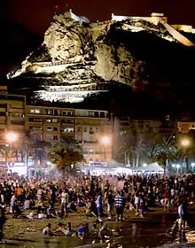The Bonfires of Saint John (Spanish: Hogueras de San Juan, Valencian: Fogueres de Sant Joan)[1] are a traditional and popular festival celebrated in the city of Alicante, Spain, from 19 to 24 June.[2] The celebration ultimately stems from a tradition of bonfires for Saint John's Eve that can be found in many places, among them the Mediterranean coast of Spain, especially Catalonia and the Valencian Community; in Alicante, it's the official and most important festivity in the city. It was officially declared as a Fiesta of International Tourist Interest[3] in 1983 and a Bien de Interés Cultural in 2014.[4]