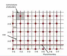 Almost every computational fluid dynamics problem is defined under the limits of initial and boundary conditions. When constructing a staggered grid, it is common to implement boundary conditions by adding an extra node across the physical boundary. The nodes just outside the inlet of the system are used to assign the inlet conditions and the physical boundaries can coincide with the scalar control volume boundaries. This makes it possible to introduce the boundary conditions and achieve discrete equations for nodes near the boundaries with small modifications.