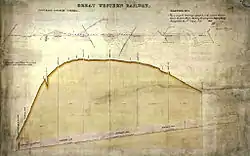 During the 1830s, Isambard Kingdom Brunel developed a plan for a railway running east–west between London and Bristol.[5] The Great Western Main Line, would maintain either level ground or gentle gradients of no greater than 1 in 1000 along most of its route. Between Swindon and Bath, at the highest point of the line a tunnel was proposed through Box Hill, outside Corsham.[5]