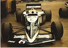 The Brabham BT52 was a Formula One car designed for the Brabham team by longtime Brabham designer Gordon Murray for the 1983 season. The car ran on Michelin tyres and was powered by the BMW M12/13 four-cylinder turbocharged engine, which in 1983 produced a maximum power of approximately 1,280 bhp (950 kW) in qualifying trim, detuned to around 850 bhp (630 kW) for the proper races. Its drivers were 1981 World Champion Nelson Piquet and Riccardo Patrese.[4]