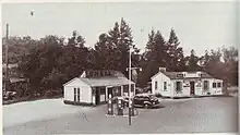 1920s picture of Branch Village featuring a former gas station and Kennedy's Lunch, an extant restaurant