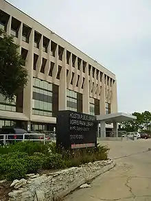 Originally Brays Oaks had a standalone library.[19][74] The original 17,000-square-foot (1,600 m2) Frank Neighborhood Library opened in 1983. In 2005 about 2.5 million dollars in funds were approved to overhaul the branch. Shortly afterwards library officials found that the location was within a Harris County floodplain. Wendy Hegar, the assistant director for planning and facilities at the Houston Public Library, said that in order to keep using the original location, the library system would have had to spend millions of dollars to raise the floor of the facility by 1 foot (0.30 m) or to build a 2-foot-tall (0.61 m) concrete flood wall. Jim Myers, the community services director of the Brays Oaks District, said that the building would have had to have been raised by 18 inches (460 mm) in order for the library system to keep using it. Instead the city decided to relocate into the Brays Oaks Towers, spending around $3.9 million.[75] Sandra Fernandez, a spokesperson for Houston Public Library, said that the estimated cost to build a new standalone library branch was 6 to 7 million dollars. The $2.5 million originally earmarked for the standalone Frank library was moved to a different project.[75] The City of Houston entered into a 10-year lease to occupy space in the Brays Oaks Towers.[76] By December 2009 the former Frank library facility was for sale.[77]
