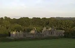 Bridgetown Priory was founded sometime after 1202 and before 1216 on land donated to the Augustinians by Alexander fitz Hugh.[3][4][5][6][lower-alpha 1] It was colonized with monks from Newtown Abbey, in County Meath.[7] It was dedicated to Saint Mary of the Bridge.[8] It is likely that around 1219 fitz Hugh's lands and his patronage of the church passed to the Roches of Castletownroche, through the marriage of Synolda fitz Hugh.[9][10] The monks owned land on either side of the river, and two timber bridges existed to allow them to cross, neither of which are extant today,[11] though foundation stones are still visible on the south bank of the river.[6] In a Henrician survey, the value of Bridgetown priory was considered to be among the most valuable in the diocese, second only to that of the Cistercian priory at Abbeymahon.[12] Following the dissolution of the monasteries by Henry VIII, Bridgetown was officially dissolved between 1540[13] and 1541.[14] Following dissolution, the monastery was finally suppressed in 1546.[15] By this point the priory, consisting of "a church with belfry, dormitory, hall, buttery, kitchen, cloister, and cellar, wit divers [sic] other chambers", was in ruinous condition.[14]