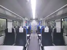 The passenger accommodation was to include versions for both "metro" and "commuter" trains,[note 2] based around a 2+2 seating arrangement, with fold-up seats and designed for high levels of standing passengers.[9] Ride quality and noise levels were expected to equal or be better than those of current vehicles and climate control (air-conditioning) was to be fitted.[11] The vehicles were to be fitted for driver-only operation, and to include GSM-R communications radio, as well as AWS, TPWS, and ERTMS level 2 safety systems. The ability to be used in 'Automatic train operation' (ATO) mode, where an on-board computer controls the motors and brakes, was also specified.[11]