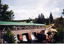 Burk's Falls is an incorporated village in the Almaguin Highlands region of Parry Sound District, Ontario, Canada, located 265 kilometres (165 mi) north of Toronto and 90 kilometres (56 mi) south of North Bay, Ontario. The village, and the waterfall on the site, were named (for himself) by David Francis Burk of Oshawa, after he selected the land surrounding the waterfall in the Free Land Grant Act.[4] Burk's Falls is part of the Magnetawan River waterway.