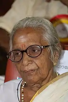 C. S. Radhadevi is a playback singer, dubbing artist, radio artist and actor from Kerala, India. Radhadevi has been in the field of Malayalam radio broadcasting for seven decades. She has sung in over thirty films in a span of 30 years. She has received many awards including Kerala Sangeetha Nataka Akademi Fellowship, Kerala Sangeetha Nataka Akademi Award, Gurupooja Award by Kerala Sangeetha Nataka Akademi, Kerala Film Critics Award and the Kerala State Film Award for her Outstanding Contribution to Malayalam Cinema.