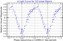 - ↑ Mikulášek, Z.; Žižňovský, J. (October 2001), "Further Improvement of the Period and New R Light Curve of CQ UMa" (PDF), Information Bulletin on Variable Stars, 5188 (1): 1, Bibcode:2001IBVS.5188....1M, retrieved 1 October 2022.