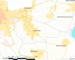 Map of Cabestany and its surrounding communes