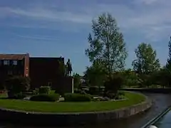 Further south, at Denstone, several buildings including a church have been built on the line of the canal. Incidentally this branch line had the first automatic, train-operated level-crossing in the UK, at Spath, just outside Uttoxeter.[27] A few bridges from the Uttoxeter branch remain, with the occasional 'milepost', and Uttoxeter still has an area called "The Wharf". The Caldon & Uttoxeter Canals Trust has put forward plans to re-open the Uttoxeter Branch. Part of the old canal bed has been lost underneath JCB's head office and factory at Rocester, so the proposed route diverges from the original canal.