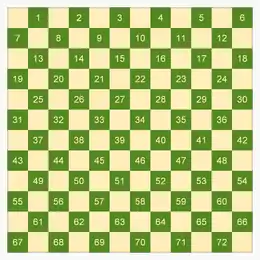 ![]() Canadian checkers board and starting setup; White moves first. | |