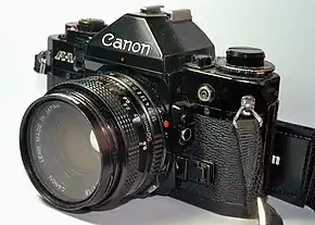 The Canon A-1 is an advanced-level single-lens reflex (SLR) 35 mm film camera for use with interchangeable lenses. It was manufactured by Canon Camera K. K. (today Canon Incorporated) in Japan from March 1978 to 1985. It employs a horizontal cloth-curtain focal-plane shutter with a speed range of 30 to 1/1000 second plus bulb and flash synchronization speed of 1/60 second. It has dimensions of 92 millimetres (3.6 in) height, 141 millimetres (5.6 in) width, 48 millimetres (1.9 in) depth and 620 grams (22 oz) weight. Unlike most SLRs of the time, it was available in only one color; all black. The introductory US list price for the body plus Canon FD 50 mm f/1.4 SSC lens was $625; the camera body was generally sold with a 30–40% discount (roughly $375 to $435).