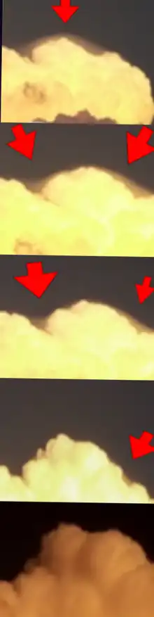 Pilei can also form above mountains, ash clouds, and pyrocumulus clouds from erupting volcanoes.[6] Pilei form above some mushroom clouds of high-yield nuclear detonations.[7]