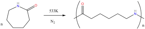 Almost all caprolactam produced goes into the manufacture of Nylon 6. The conversion entails a ring-opening polymerization: