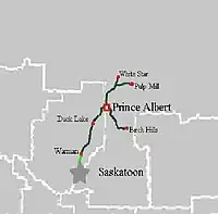 - ↑ "Local Bid to Purchase Rail Line Stalled". Shellbrook Chronicle. March 5, 2010.