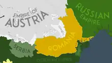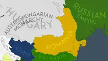 The Romanian army, under Carol, continued to fight in the war, most notably the battles of Smârdan and Vidin.[36] By early 1878, the Turks were losing the war and on the third of March they signed the Treaty of San Stefano, which recognized the independence of Romania, Serbia, Montenegro and the autonomy of Bulgaria.[37][38]