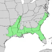 | Natural range of Carya aquatica | |