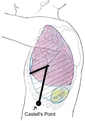 Castell's sign[1] is a medical sign assessed to evaluate splenomegaly and typically part of an abdominal examination. It is an alternative physical examination maneuver to percussion over Traube's space.