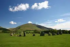 Every year, thousands of tourists travel to the site, making it the most visited stone circle in Cumbria.[7][8] This plateau forms the raised centre of a natural amphitheatre created by the surrounding fells and from within the circle it is possible to see some of the highest peaks in Cumbria: Helvellyn, Skiddaw, Grasmoor and Blencathra.