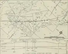 Oil discoveries in the 1880s and 1890s in Los Angeles County, and along the south coast of Santa Barbara County, encouraged drillers to investigate the northern part of Santa Barbara County, and they were quickly rewarded, with the discovery of the huge Orcutt field in 1901 and the Lompoc field in 1903. The first attempts to find oil in the Cat Canyon area took place in 1904, with two attempts by Rice Ranch Oil Co. to find oil or gas. Both wells failed on boulders and loose sand which plugged the well bores. Palmer Oil Company succeeded in 1908, drilling to 3,200 feet with a well that producing 150 barrels a day. Compared to the gigantic gushers of the Orcutt field, it was a modest success at first.[11] However, after several months it began to flow, and then spout, becoming an immense gusher producing in excess of 10,000 barrels per day before clogging up with sand and ceasing altogether.[12][13] Similarly, oil in the east area of Cat Canyon was discovered by Brooks Oil Company in 1909 when Well No. 1 was drilled to a depth of 2,615 feet.[14]