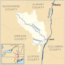 Catskill Creek is a 46.0-mile-long (74.0 km)[2] tributary of the Hudson River that drains the northeastern Catskill Mountains of the U.S. State of New York. From its source at Franklinton Vlaie in Schoharie County it flows southeast through parts of Albany County and Greene County to its mouth at the village of Catskill on the Hudson River.[3]