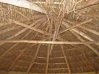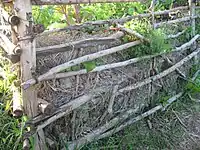 The garden resembles a compost heap with green matter placed on the very bottom of the structure, which is made from lengths of thin poles (latte). Decomposed material (wood chips, leaves, etc.) is layered on top of the green matter, followed by a mix of soil and compost. Seedlings are planted and mulched on top of the bed while herbs are planted on the sides, creating a network of strong roots to help contain the soil in the garden structure.