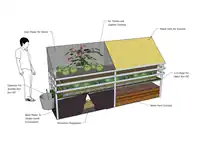 The indoor garden is a conceptual design for a compact, portable garden that can be put in almost any living space. Ideally, the garden would be put under a south-facing window (in the northern hemisphere), and would provide enough food to sustain a family.