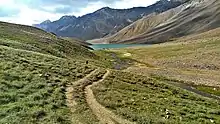 There are vast meadows on the banks of the lake. During springtime, these meadows are carpeted with hundreds of varieties of wild flowers.[4] In 1871, Harcourt, Assistant Commissioner of Kullu, reported that there was a plain of good grass to the north of Chadra Taal, where shepherds brought large herds for grazing from Kullu and Kangra.[5] Due to overgrazing, the grasslands are now degraded.[2]