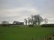 Chapeltoun Mains farm with 'Black Sawney's Park' in front, taken from near Chapeltoun Bridge.