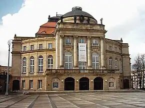 Intendant Bernhard Helmich focused on the presentation of rarely played historic operas, such as Mascagni's Iris, Nicolai's Il templario and Die Heimkehr des Verbannten, Pfitzner's Die Rose vom Liebesgarten, Reznicek's Benzin, and Schreker's Der Schmied von Gent. Vasco de Gama, an early version of Meyerbeer's L'Africaine, was named Wiederentdeckung des Jahres (Rediscovery of the year) in 2013 by the journal Opernwelt.[1] German premieres have included Jonathan Dove's Pinocchios Abenteuer, and both Love and Other Demons and Paradise Reloaded (Lilith) by Péter Eötvös.[1] Two productions received the German theater award Der Faust in 2007: Prokofiev's Die Liebe zu den drei Orangen, staged by Dietrich Hilsdorf, and the ballet Giselle M. in a choreography by Stephan Toss.[3][4][5]