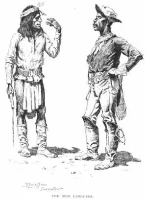 The Sign Language by Frederic Remington shows an Apache scout and a Buffalo soldier during the Apache campaign in 1889.