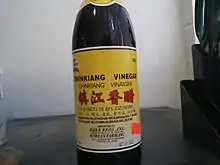 Zhenjiang or Chinkiang vinegar is a rice-based black vinegar widely used in Chinese cuisine. It takes its name from the city of Zhenjiang in Jiangsu province.