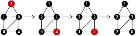 A state in which no further firing is possible is a stable state. Starting from an initial configuration, the game proceeds with the following results (on a connected graph).