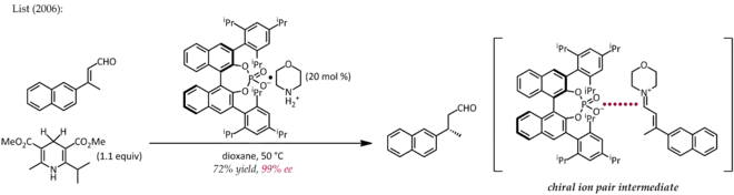 4. Mayer, S.; List, B. (2006). "Asymmetric Counteranion-Directed Catalysis". Angew. Chem. Int. Ed. 45 (25): 4193–4195. doi:10.1002/anie.200600512. PMID 16721891.