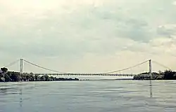 The Chirundu Bridge now consists of two road bridges side by side across the Zambezi River between the small town of Chirundu, Zambia and the village of Chirundu, Zimbabwe. At this location around 65 km downstream from the Kariba Dam the river is about 400 m wide.[1] The bridges were once seen as part of a Cape to Cairo Road and thus are on the Harare to Lusaka section of the route.