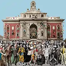 In 2017 the pop artist Sir Peter Blake, a resident of Chiswick since 1957 and who saw Max Miller at the Chiswick Empire, created a Sgt. Pepper-like collage mural under the railway arches at Turnham Green tube station which featured some of the singers, actors, comedians and music hall artists who had performed at the Chiswick Empire including Marie Lloyd, Cliff Richard, Arthur Askey, Laurel and Hardy, Tommy Cooper, Max Wall, Liberace, Terry-Thomas, George Formby, Peter Sellers, Max Miller, Morecambe and Wise, Vesta Tilley, Wilson, Keppel and Betty and others. Prints of the mural were sold to raise money for the redevelopment of the ‘piazza’ area in Chiswick.[7][8]