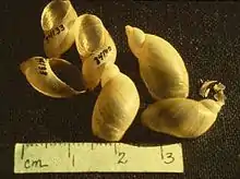 - 1 2 3 Whiteleather K. (2004). "Mark-release-recapture study of the Chittenango ovate amber snail (Novisuccinea chittenangoensis Pilsbry), June–October 2004". Final Report to the New York State Department of Environmental Conservation Endangered Species Unit.