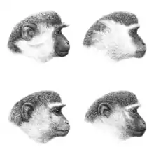 Bottom left: malbrouck, bottom right: vervet