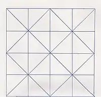 Similarly, according to Aryan (1983), the term chowk-poorana in Punjab refers to floor art and mud wall painting. This art is primarily practised by women and is a folk tradition.[4] In Punjab, during festivals such as Holi, Karva Chauth and Diwali, walls and courtyards of rural houses are enhanced with drawings and paintings similar to rangoli in South India, mandana in Rajasthan, and rural arts in other parts of India. Chowk-poorana mud wall art in Punjab is given shape by the peasant women of the state. In courtyards, this art is drawn using a piece cloth. The art includes drawing tree motifs, flowers, ferns, creepers, plants, peacocks, palanquins, geometric patterns along with vertical, horizontal and oblique lines. These arts add to the festive atmosphere.[5]