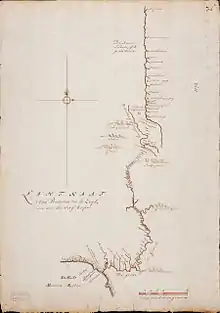 In 1648, the Ciliwung was connected with the Krukut via Molenvliet.[10] There was an attempt to close the Ciliwung river course north of Noordwijk.[11] The part of the river was dammed so that the river was forced to flow westward via Molenvliet.[11] Despite the attempt, seasonal flooding occurred where the Ciliwung forced its water to flow back to its old tributary, which was still happening around 1725.[11]