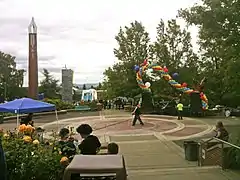 ![]() Chime Tower at Clark College, the Cannell Library in the background | |