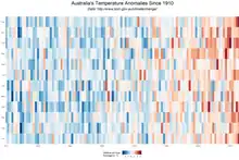 2015 was Australia's fifth-hottest year on record, continuing the trend of record-breaking high temperatures across the country.[74] According to Australian Climate Council in 2017 Australia had its warmest winter on record, in terms of average maximum temperatures, reaching nearly 2 °C above average.[75] January 2019 was the hottest month ever in Australia with average temperatures exceeding 30 °C (86 °F).[76][77]