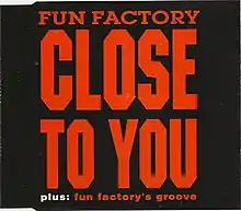 "Close to You" is a song by German Eurodance band Fun Factory, released in March 1994 by various labels as the second single from the band's debut-album, NonStop (1994). The song received positive reviews from music critics, peaking at number-one on the Canadian RPM Dance/Urban chart and at number 22 on the US Billboard Hot Dance Club Play chart. Additionally, it peaked at number 46 on the Billboard Hot 100 and number 14 on the Billboard Hot Dance Music/Maxi-Singles Sales chart. In Europe, the song reached number 19 in Germany and number 97 in the UK. Its music video was directed by Swedish director Stefan Berg[1] and filmed at a quarry. It was A-listed on Germany's VIVA in June 1994.[2] "Close to You" uses the same melody as the 1993 hit single "Hold On" by German group Loft.[3]